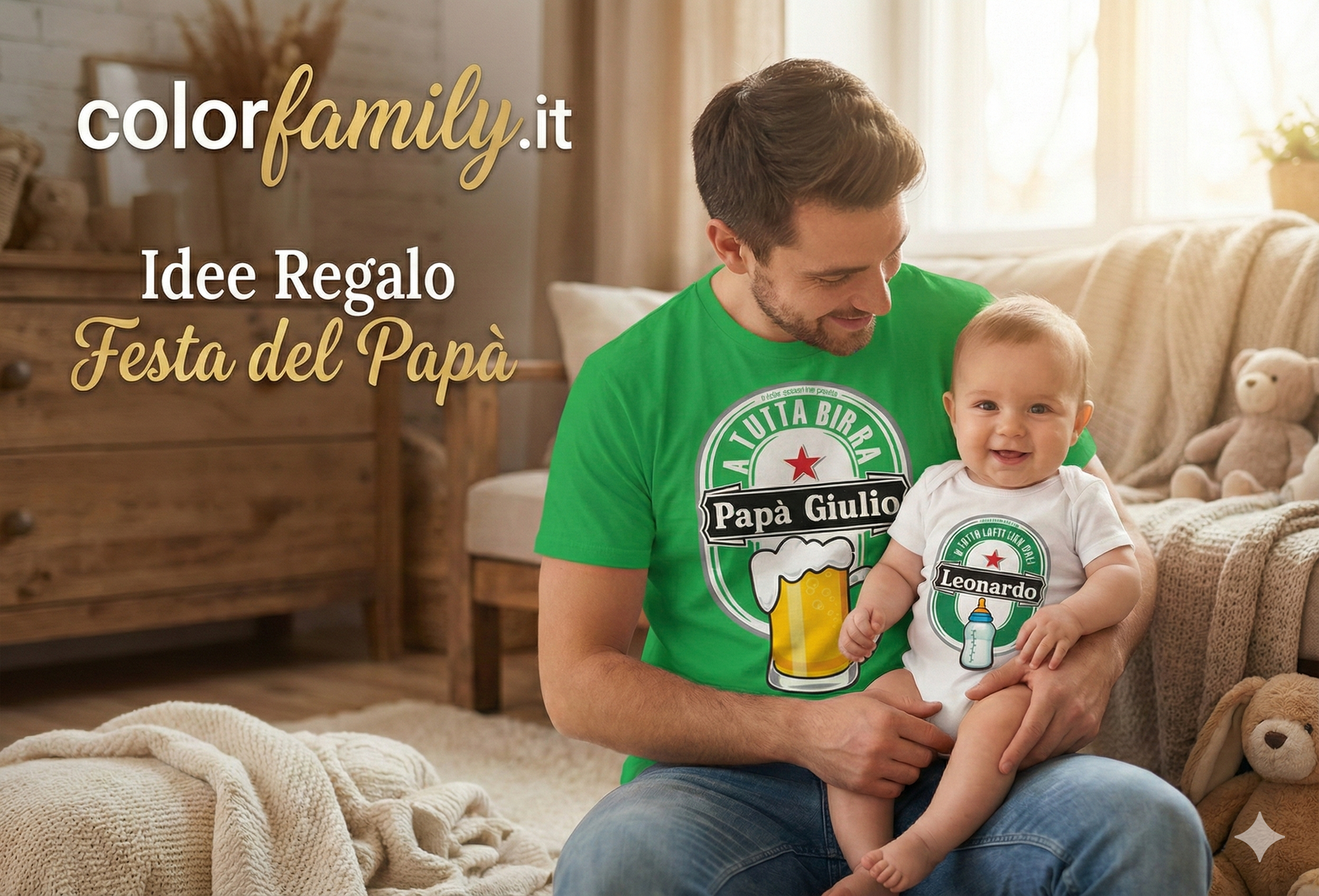 Per la Festa del Papà, dimentica la solita cravatta! Sorprendilo con un pensiero originale, divertente e creato su misura per lui. Su colorfamily.it trovi magliette coordinate, boccali personalizzati e tantissime idee uniche per strappargli un sorriso e rendere il 19 Marzo indimenticabile. Tu mettici il cuore, noi ci mettiamo il colore! 🎨 👉 Crea subito il tuo regalo personalizzato su colorfamily.it!