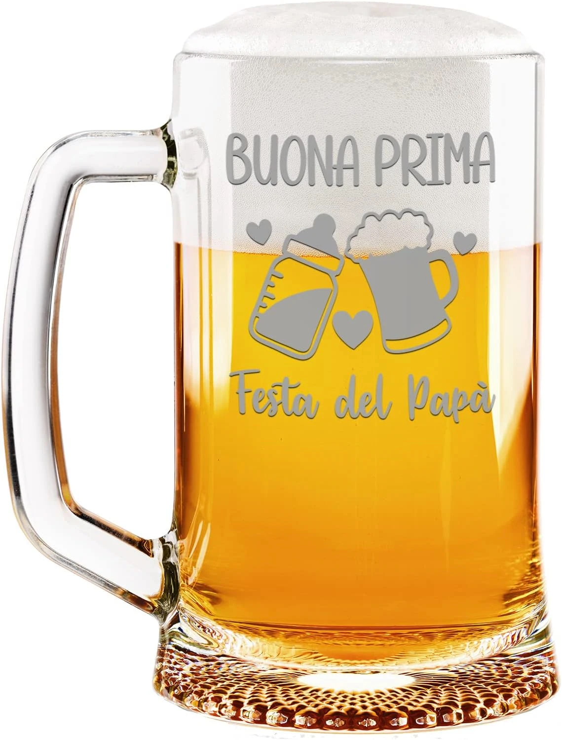 OCCALE DA BIRRA CON INCISIONE: Simpatica e originale Idea Regalo divertente compleanno papà mamma nonno nonna zio zia madrina. Capienza 50cl, vetro di alta qualità.