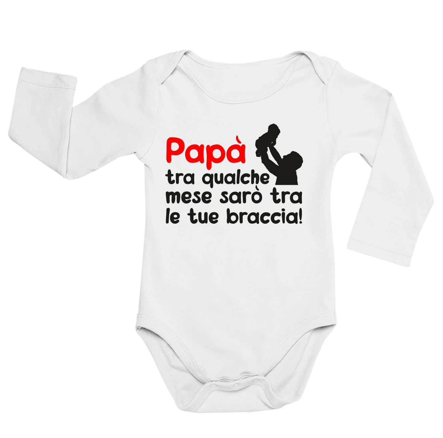 Body neonato manica lunga Regalo Festa del Papà Body papà neonato divertenti Papà tra qualche mese sarò tra le tue braccia