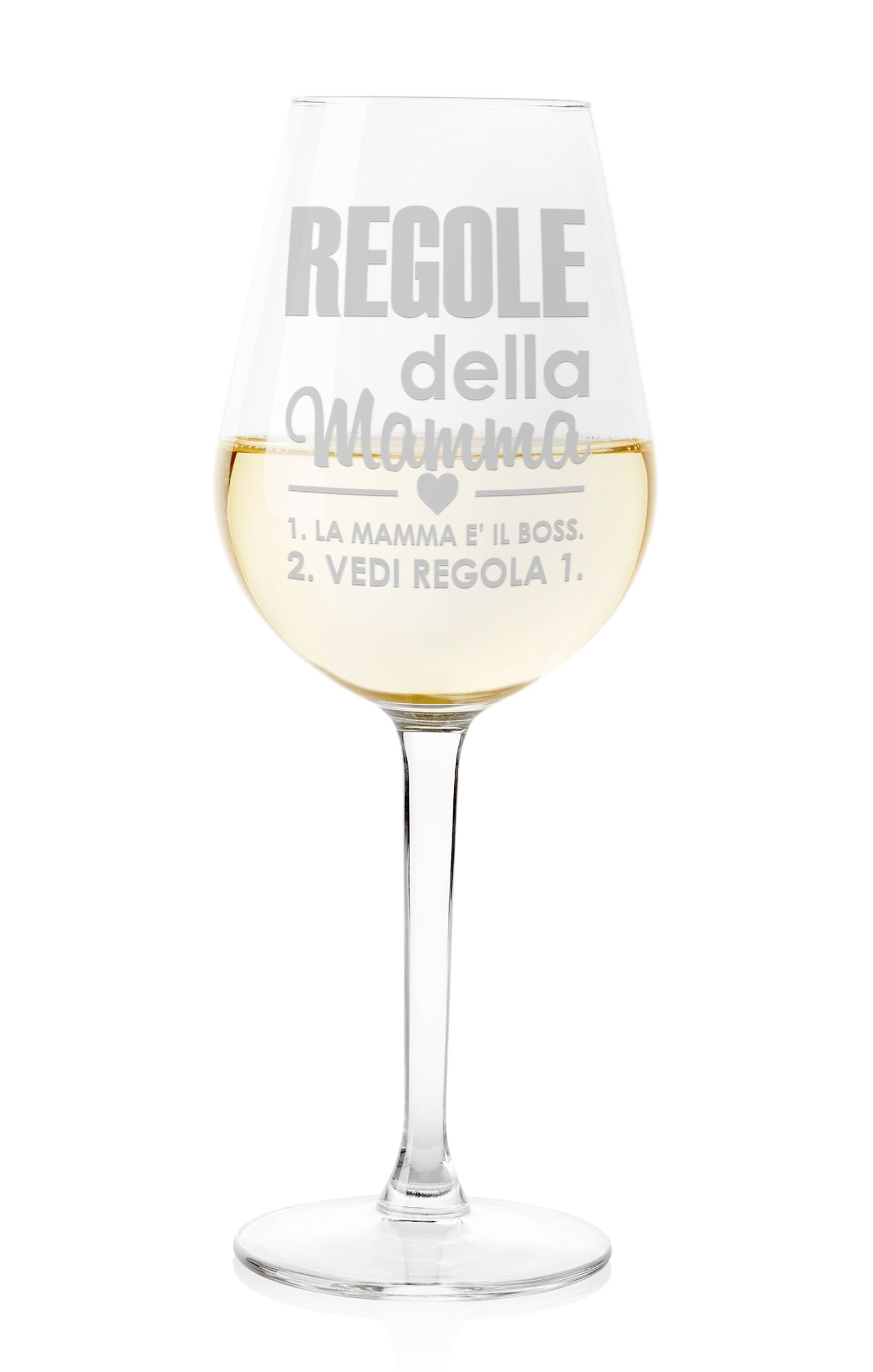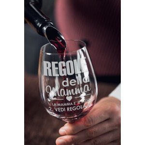 Calice Vino Mamma 50 cl con Incisione Regole della Mamma Idea Regalo Festa della Mamma Natale Compleanno