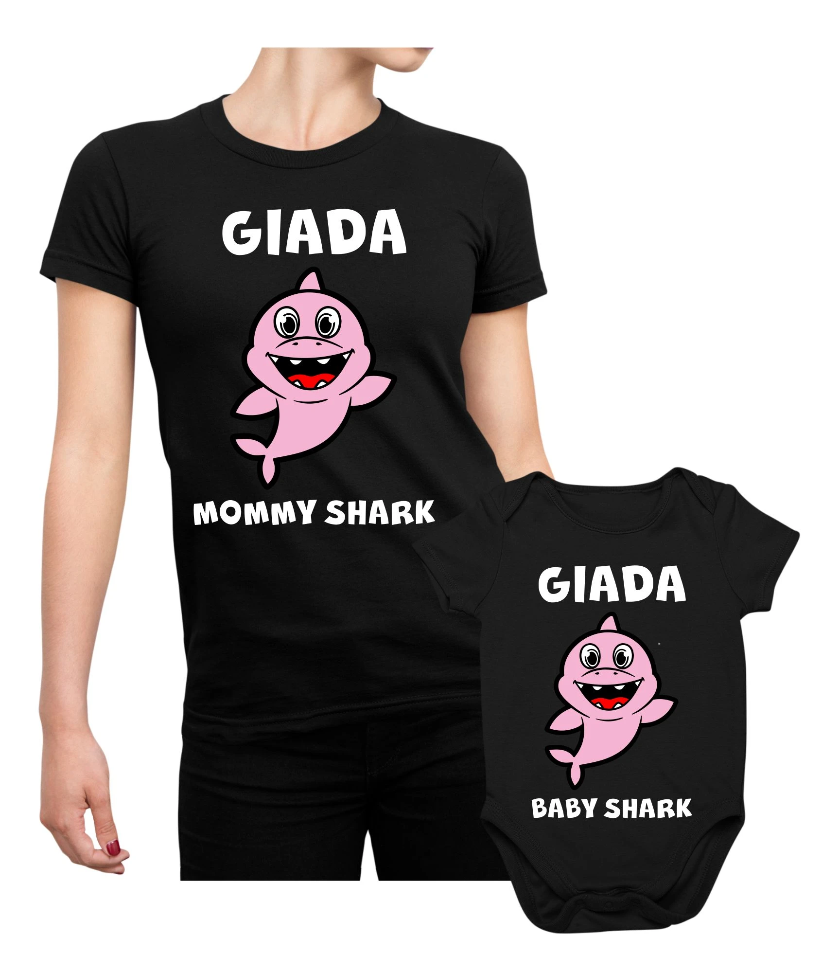 Coppia t-shirt e body neonato Festa della Mamma PERSONALIZZABILE Maglietta Mamma Figlia Mommy Shark Baby Shark – Idea Regalo Mamma