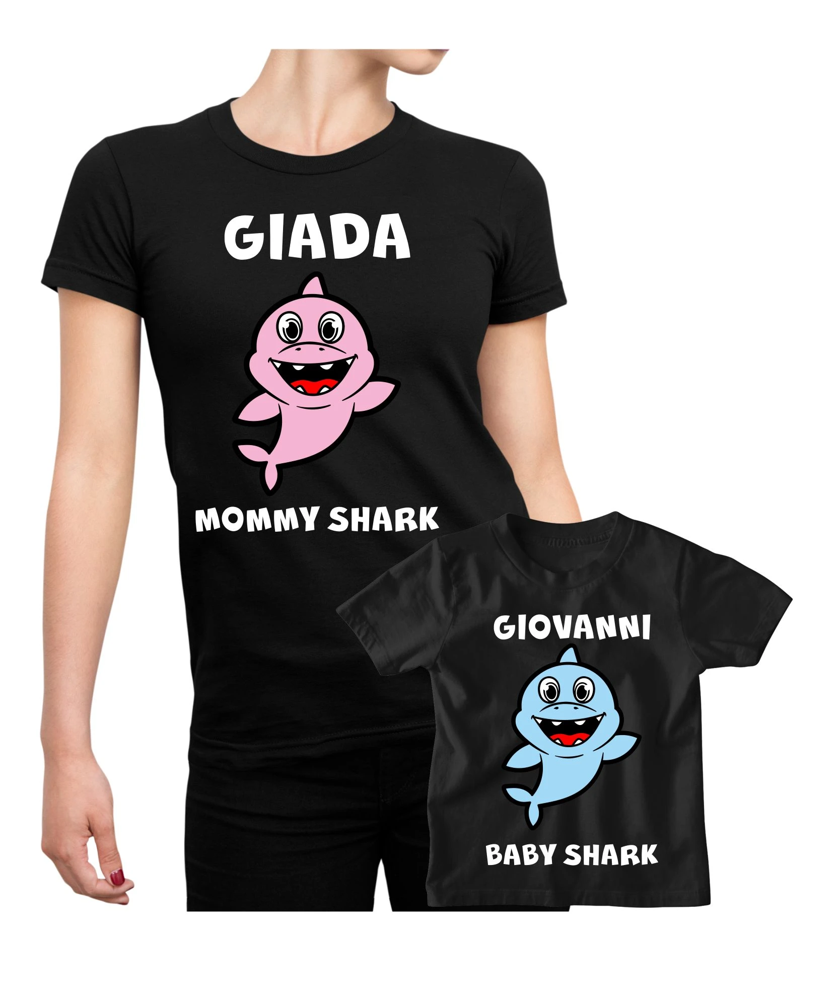 Coppia t-Shirt Festa della Mamma PERSONALIZZABILE Maglietta Mamma Figlio Mommy Shark Baby Shark – Idea Regalo Mamma
