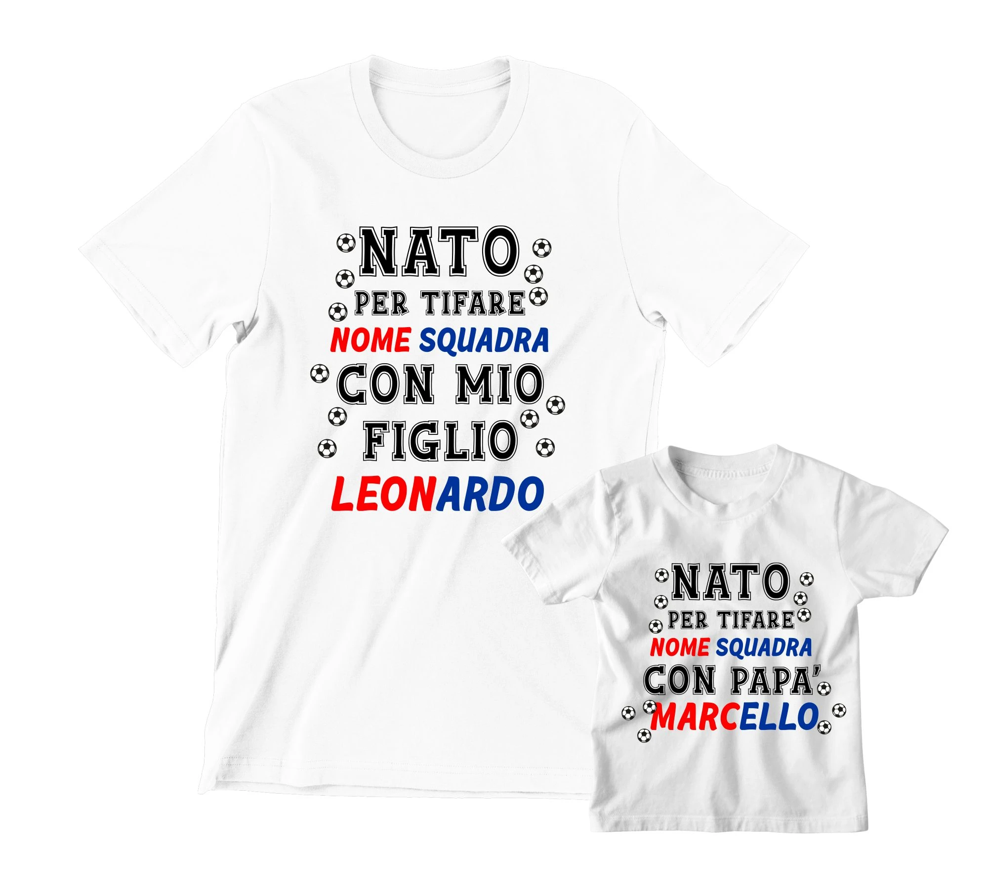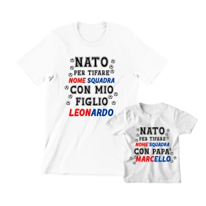 Coppia t-shirt magliette padre figlio Regalo Festa del papà Personalizzabile idea regalo papà Neonato Divertenti Nato per tifare [NOME SQUADRA] con [NOME PAPA’ NOME FIGLIO]