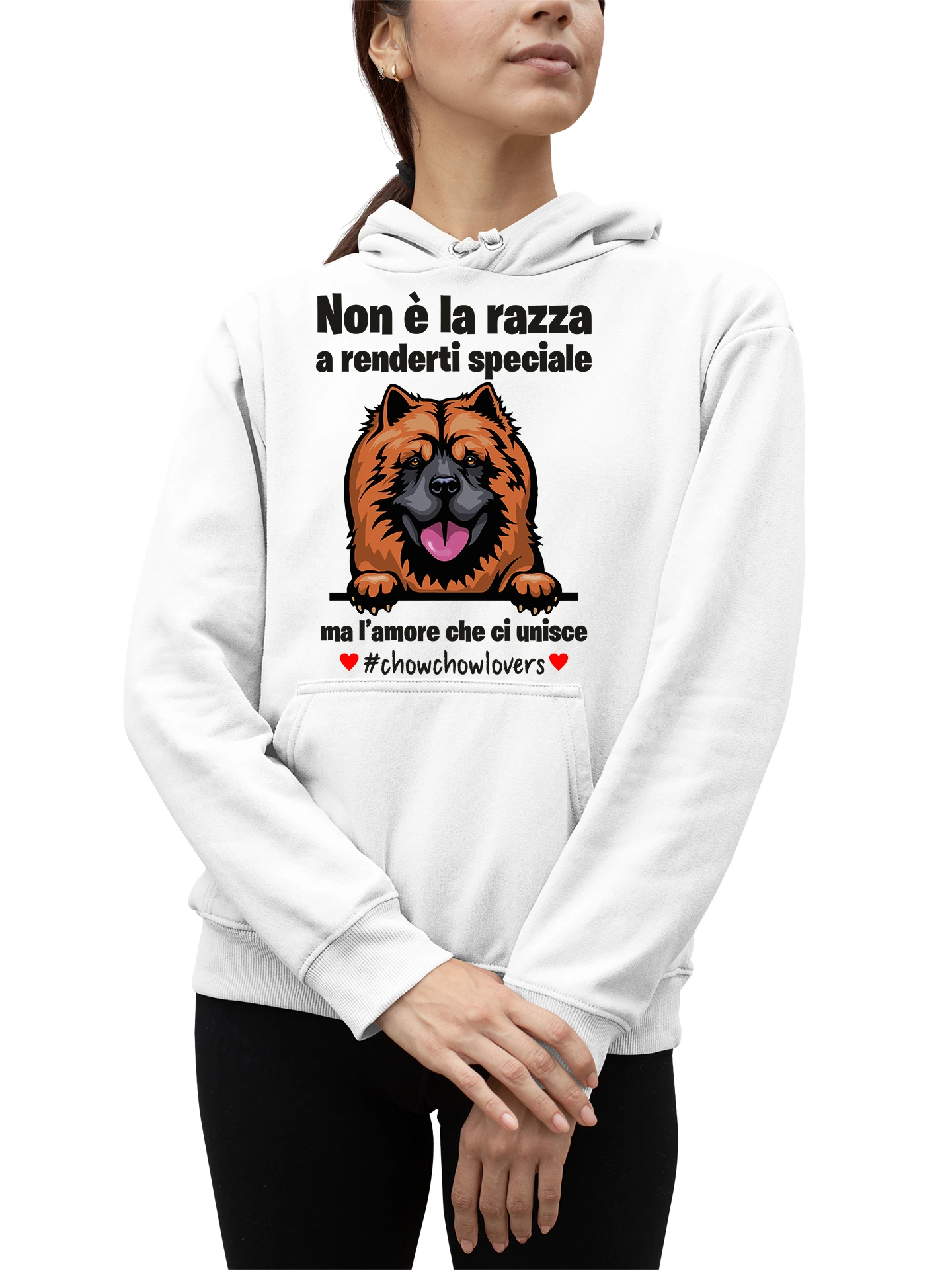 Felpa Chow Chow Donna Non è la razza che conta ma l’amore che ci unisce felpa con cappuccio Donna divertenti