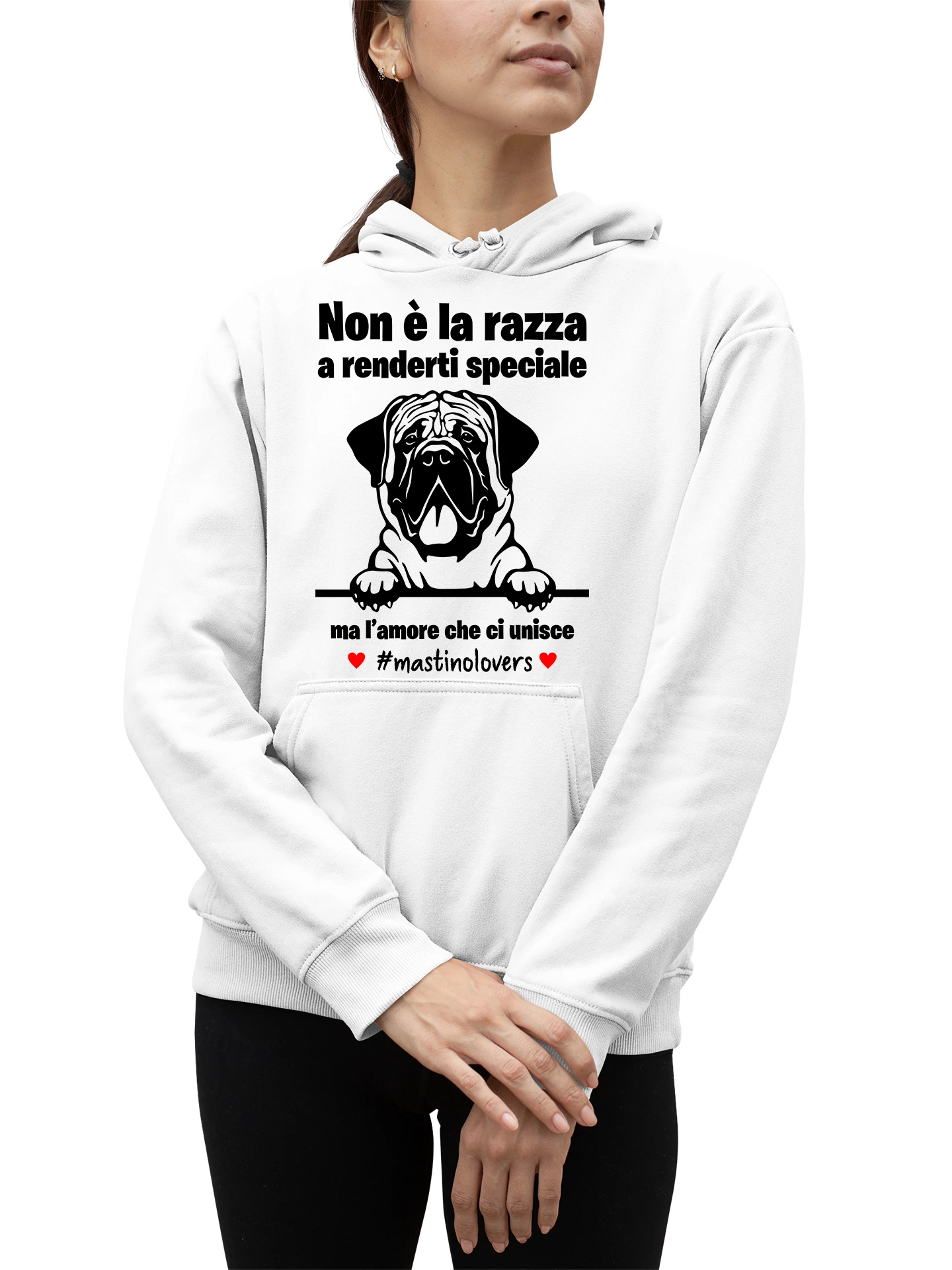Felpa Mastino Donna Non è la razza che conta ma l’amore che ci unisce felpa con cappuccio Donna divertenti