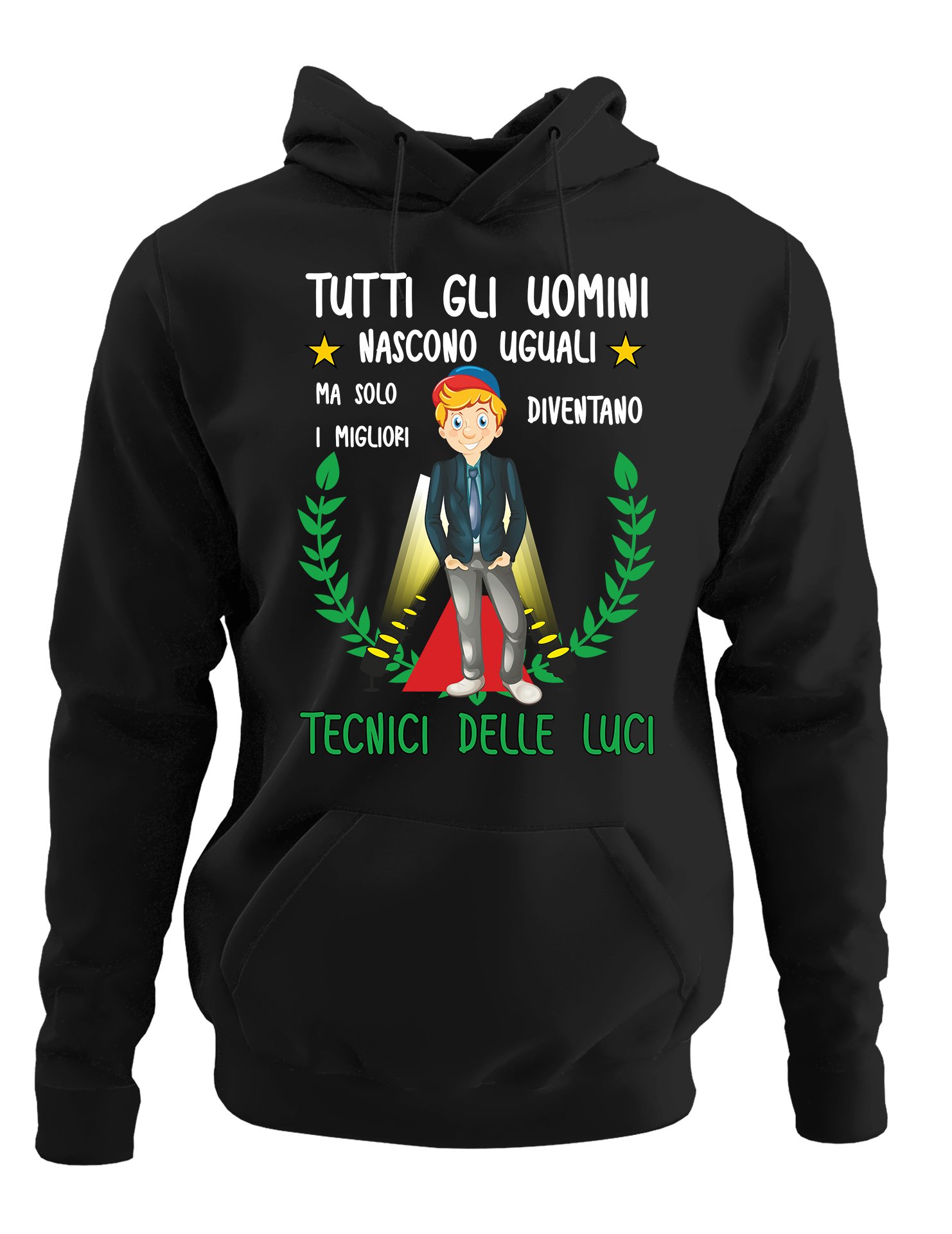 Felpa 100% in cotone con cappuccio e tascone frontale, lacci a temaTecnico delle luci divertente Mestieri Tutti gli uomini nascono uguali, ma solo i migliori diventano tecnici delle luci Felpone con cappuccio