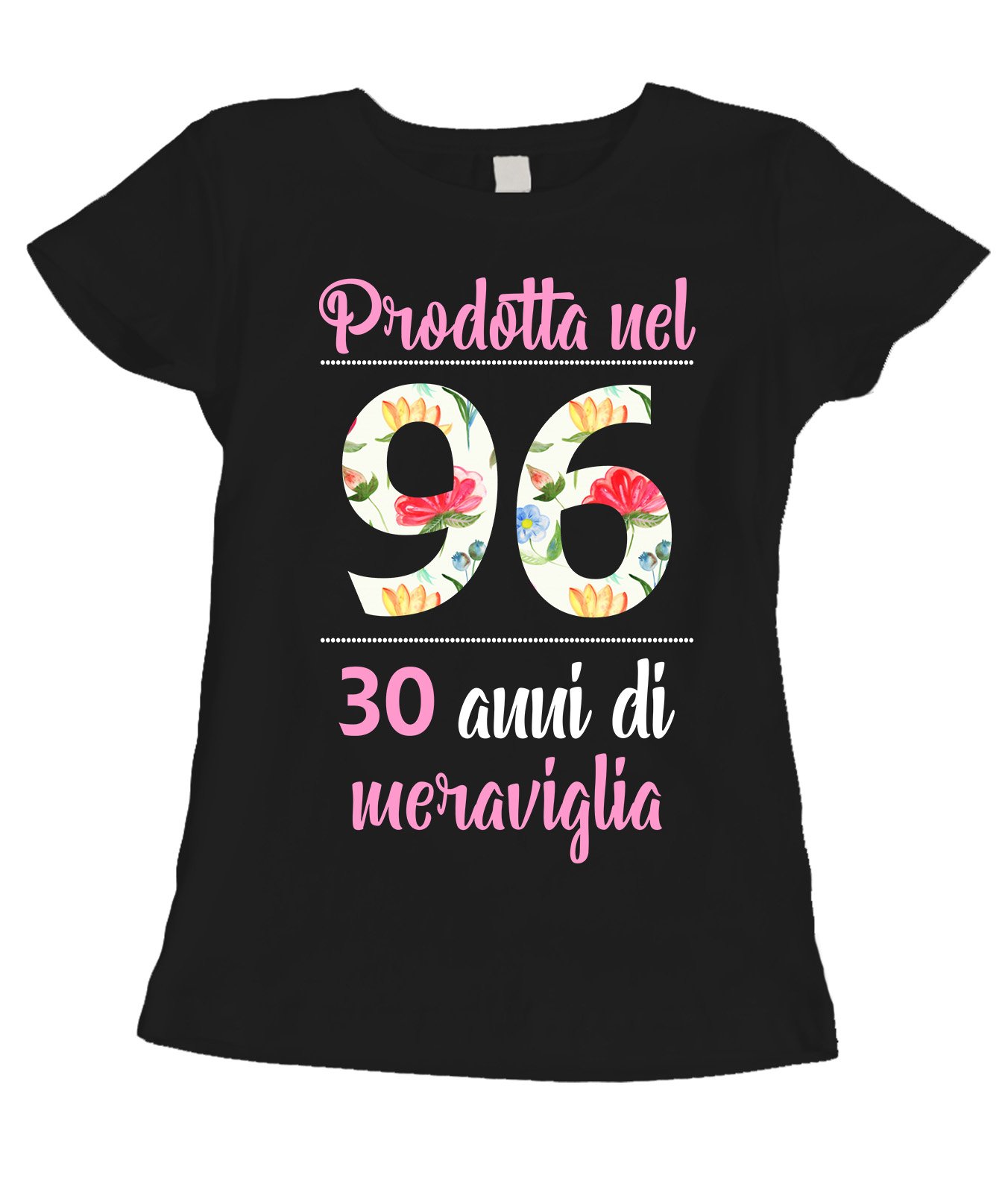 Maglietta compleanno 30 anni donna, idea regalo originale e simpatica per festeggiare un traguardo speciale. T-shirt realizzata in 100% cotone con stampa diretta su tessuto tramite inchiostri certificati: la stampa è morbida al tatto, traspirante e resistente ai lavaggi.
