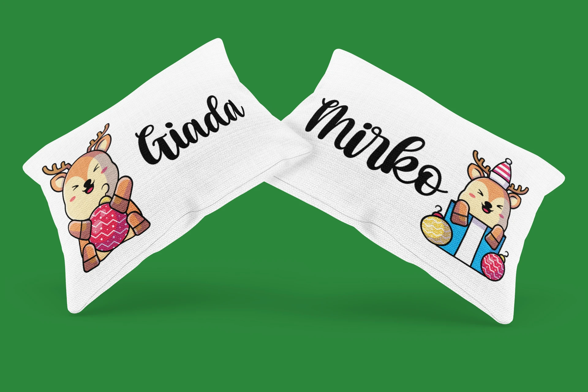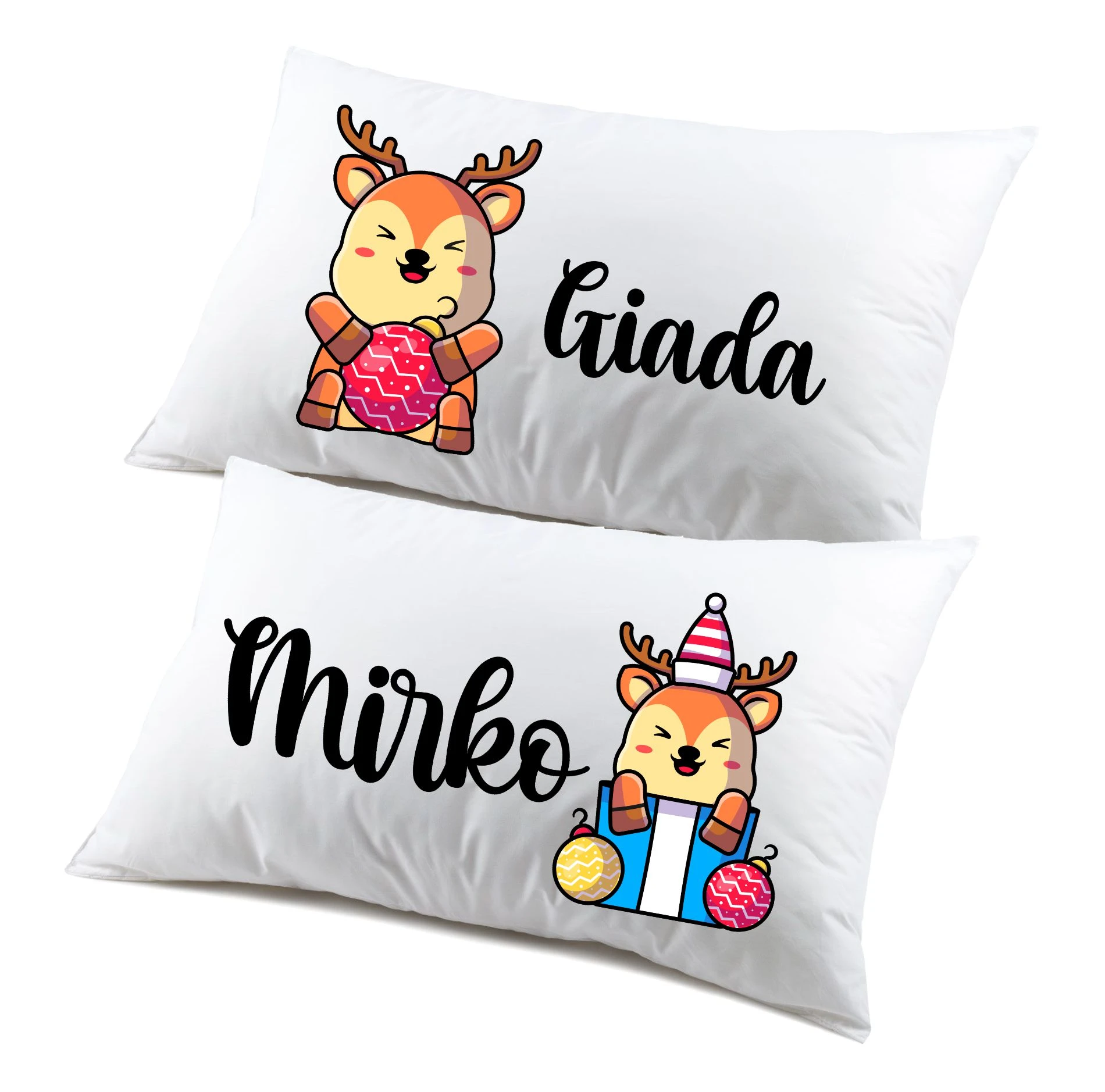 Coppia di federe bianche 100% cotone morbido: realizzate con una stampa traspirante, adatte a guanciali 50 x 80 cm. ISTRUZIONI PER LACQUISTO: Seleziona il tasto Personalizza, digita i nomi da personalizzare sulle due federe, infine aggiungi al carrello e concludi lacquisto.