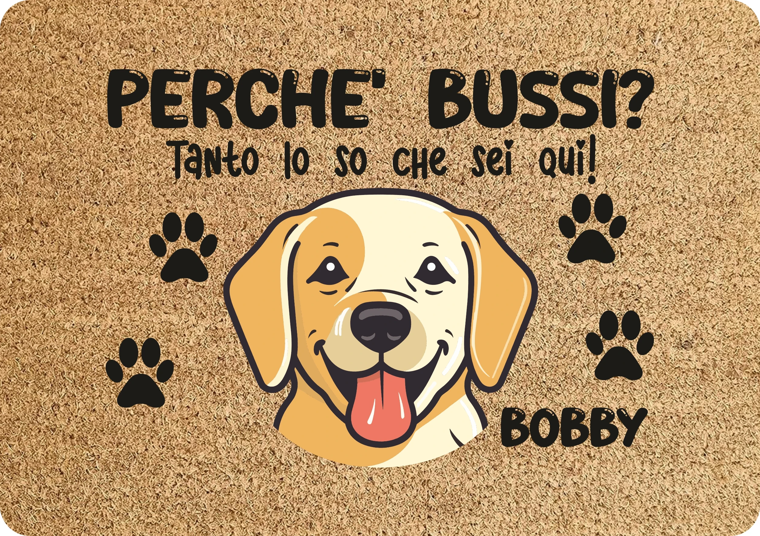Tappeto PERSONALIZZATO con nome cane divertente Labrador Perchè bussi? Zerbino in poliestere 60×40 cm