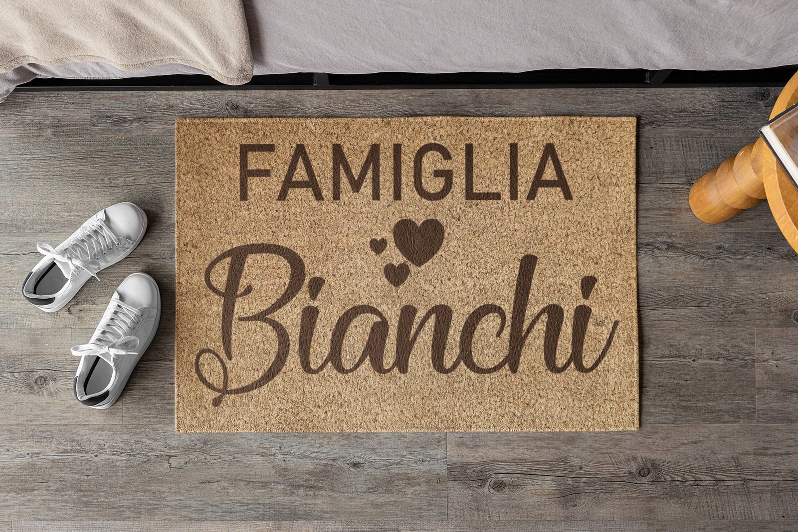 TAPPETO ZERBINO DIVERTENTE: Simpatico tappeto personalizzabile dedicato alla famiglia, un’idea regalo unica e originale per festeggiare una coppia di amici o parenti. Ideale come decorazione per l’ingresso di casa. Dimensioni 68×48 cm (la misura potrebbe variare leggermente, previa disponibilità).